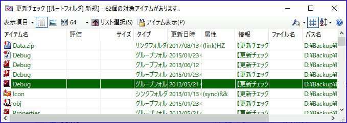 - シンクフォルダ、シンクファイルのアイテムチェック無し属性が有効な場合は、上記1.〜3.のチェックを行いません。チェックを行いたい場合は、□ アイテムチェック無しも含むを有効にしてください。